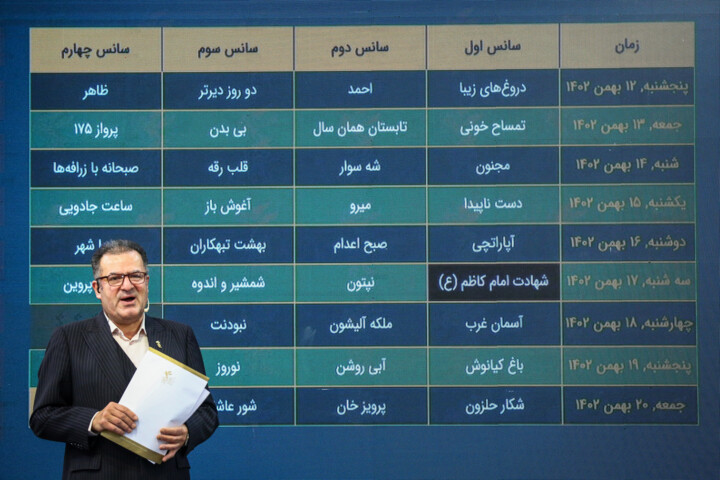 ۱۷ بهمن ماه به دلیل شهادت امام کاظم در سانس اول نمایشی نخواهد داشت. همچنین سانس آخر ۲۰ بهمن ماه به اعلام نامزدهای این رویداد اختصاص دارد.