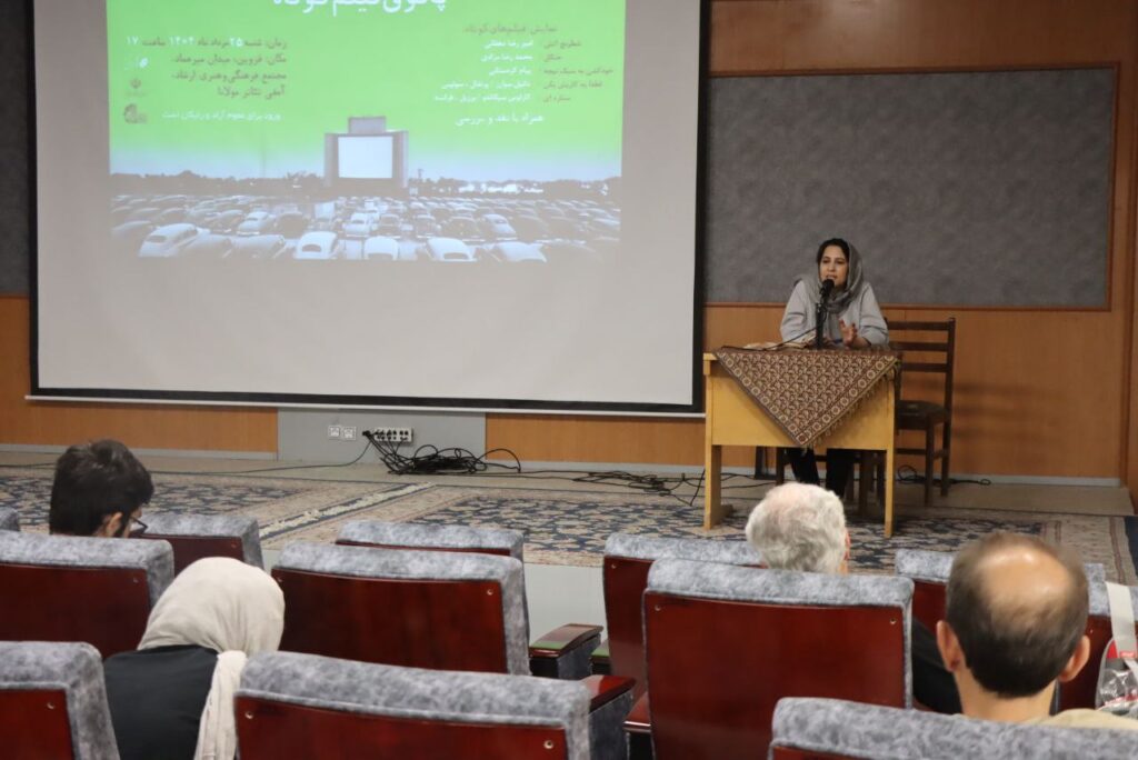 در این جلسه که توسط انجمن سینمایجوان قزوین و همکاری مجتمع فرهنگی و هنری ارشاد در سالن آمفی تاتر مولانا برگزار میشود فیلمهای کوتاه ایرانی