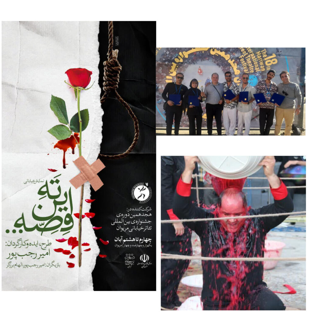 به گزارش روابط عمومی اداره کل فرهنگ و ارشاد اسلامی استان قزوین، نمایش خیابانی «ته این قصه…» به نویسندگی و کارگردانی امیر رجبپور از قزوین، در هجدهمین جشنواره بینالمللی تئاتر خیابانی مریوان خوش درخشید و توانست با کسب چندین عنوان برگزیده و تقدیر، عنوان گروه برگزیده و معرفی به جشنواره بینالمللی تئاتر فجر را از آن خود کند.